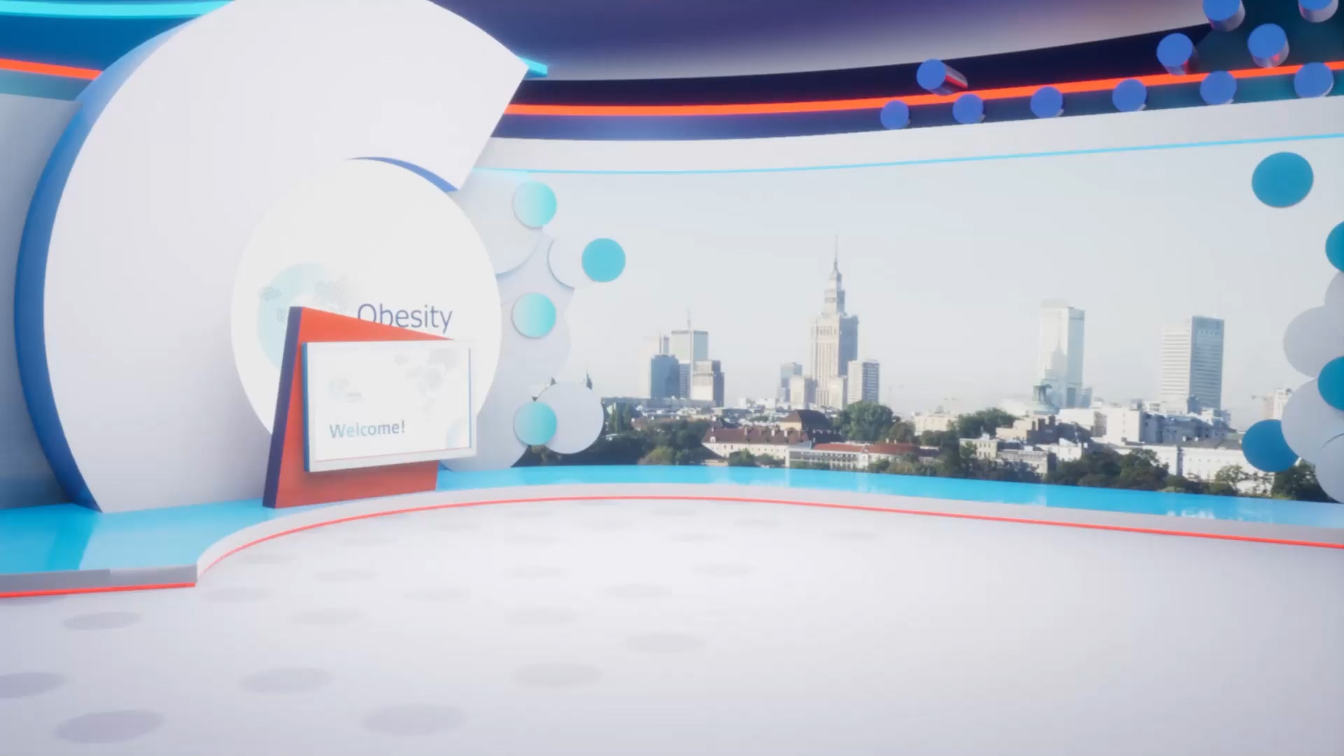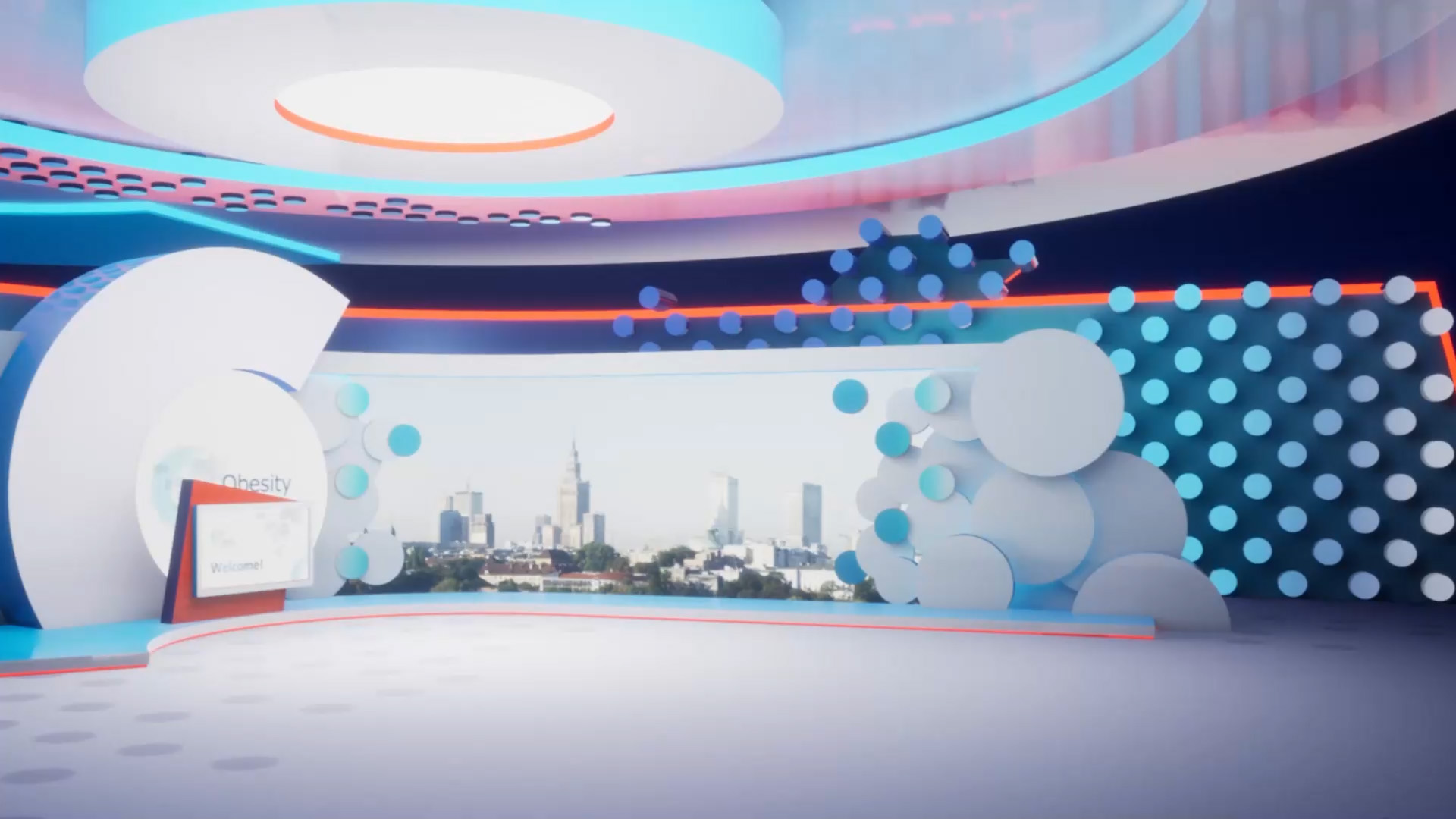 Studio wirtualne 3D wykonane dla eventu „Obesity Academy”. Projekt został przygotowany z wykorzystaniem Unreal Engine pod silnik renderowania w czasie rzeczywistym Aximmetry. Studio posiada 4 ekrany wirtualne: duży ekran panoramiczny umożliwiający wyświetlanie filmów i obrazów, ekran przeznaczony na logo lub inne materiały identyfikacyjne, a także dwa ekrany z opcją włączania i wyłączania ich w dowolnym momencie podczas emisji, pierwszy do demonstrowania prezentacji wspomagających wystąpienia prelegentów oraz drugi do publikowania animowanych wykresów statystycznych, który posiada ponadto możliwość umieszczania go w dowolnym miejscu sceny. Dodatkowo studio posiada opcję sterowania oświetleniem skierowanym na prelegentów. Każdy z trzech spotów można zapalać i gasić w zależności od potrzeby, jak również sterować ich intensywnością.